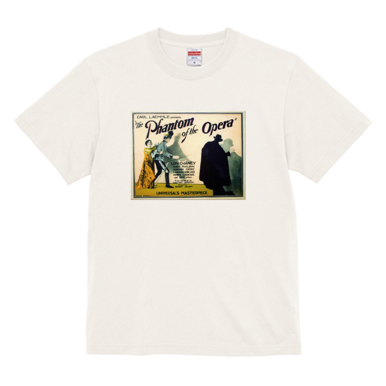 ガストン・ルルー『オペラ座の怪人』文学Tシャツ(ホワイト) | 1925年のヴィンテージ映画アートを身にまとう。
